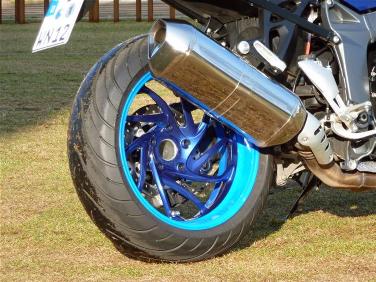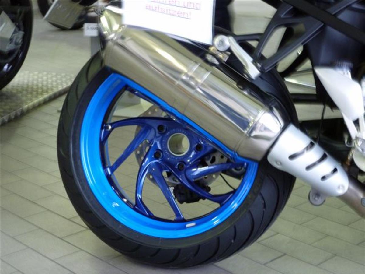 The fourth K. BMW did not manage to develop a new new interesting bike for me yet. So I had to stick to the K1300R. Again in blue. This time I combined two shades of blue: A decent dark blue BMW Montego blue metallic and a loud flashy glowing blue. I like it. And I like the mirrors painted in glowing blue.