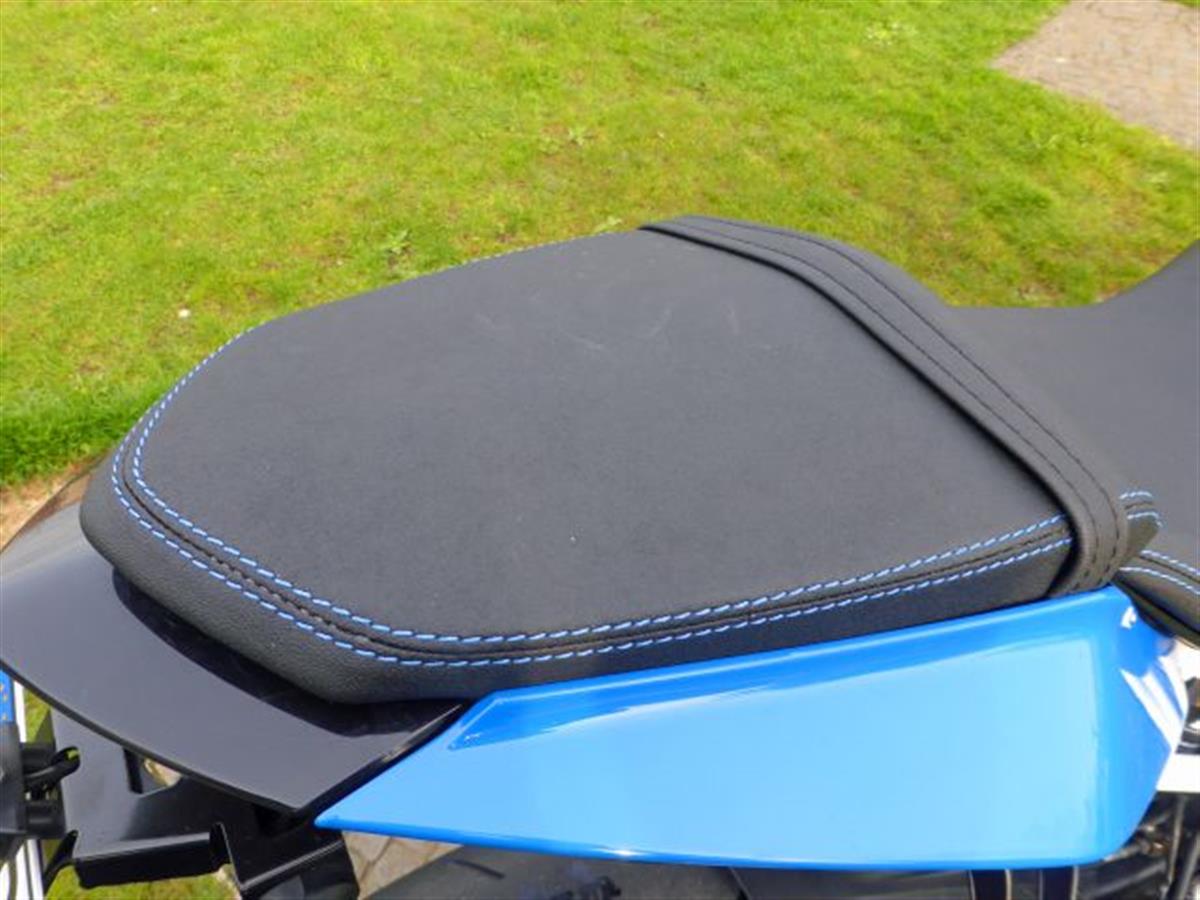 The seat from Bade with contrasting seams, stitched logo and anti slipping covering