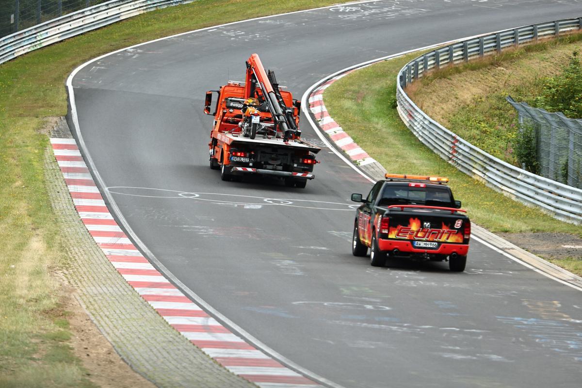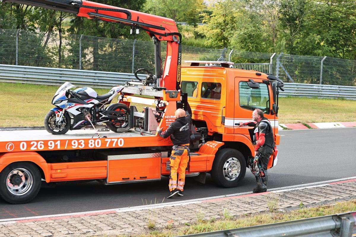The BMW bike of Helmut Dähne needs to be towed