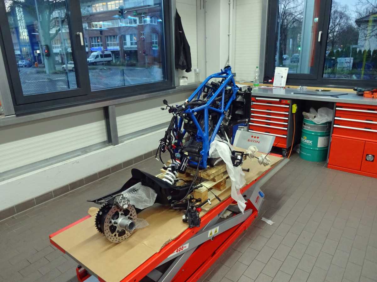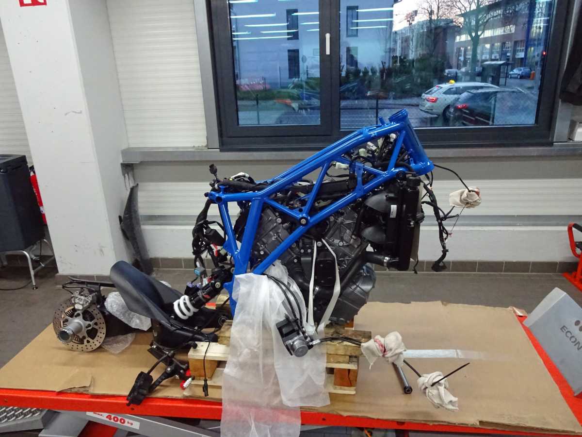After painting and powder coating the bike needs to be rebuild.